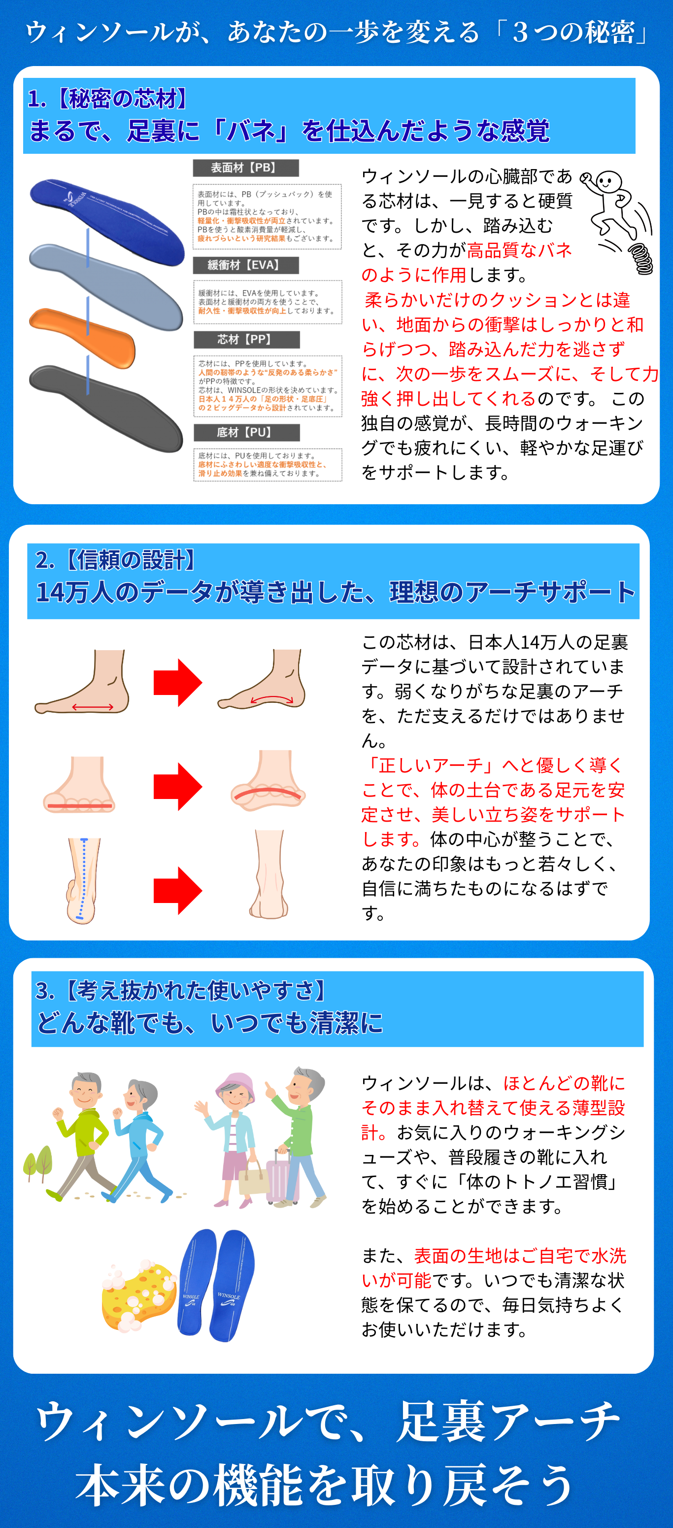 その経験から生まれたのが、あなたの活動的な毎日を、足元から力強く支える「ウィンソール」です。